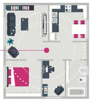Jos vaihtoehtoja on useampia, kannattaa valita huone, joka on keskeisellä paikalla. Näin modeemin muodostama langaton WiFi-verkko ulottuu koko asuntoon.