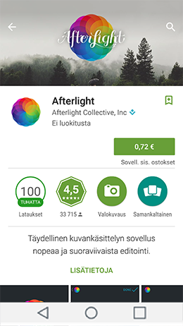 1. Valitse sovelluskaupasta haluamasi sovellus ja siirry maksamaan painamalla sovelluksen hintaa. Sovelluskauppa pyytää sinua hyväksymään sovelluksen vaatimat käyttöoikeudet. Valitse ’Hyväksy’.
