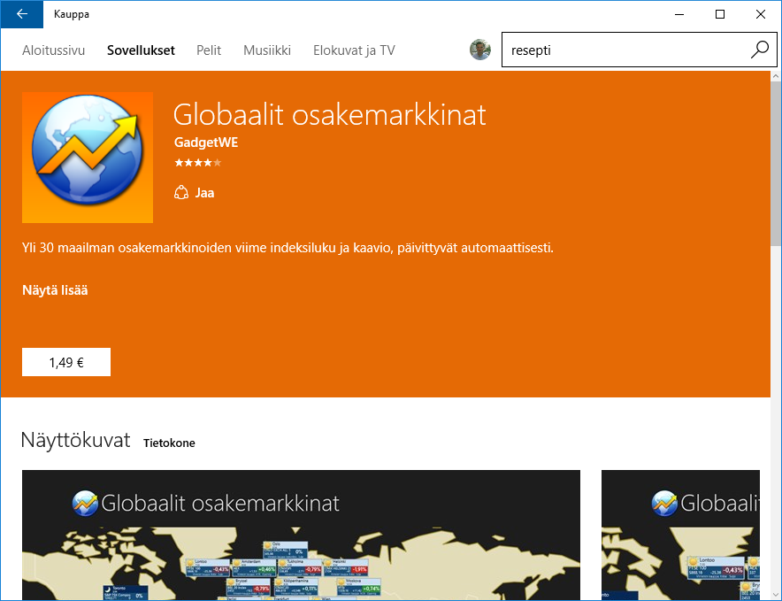 1. Valitse sovelluskaupasta haluamasi ohjelma ja siirry maksamaan painamalla sovelluksen hintaa.