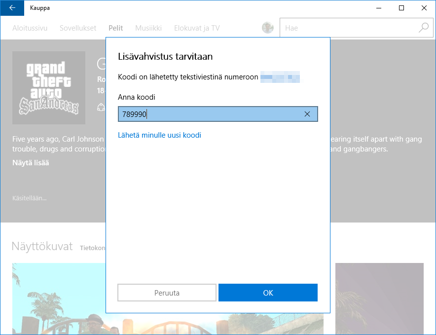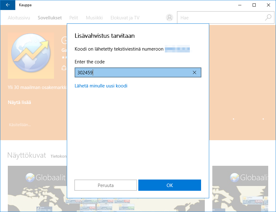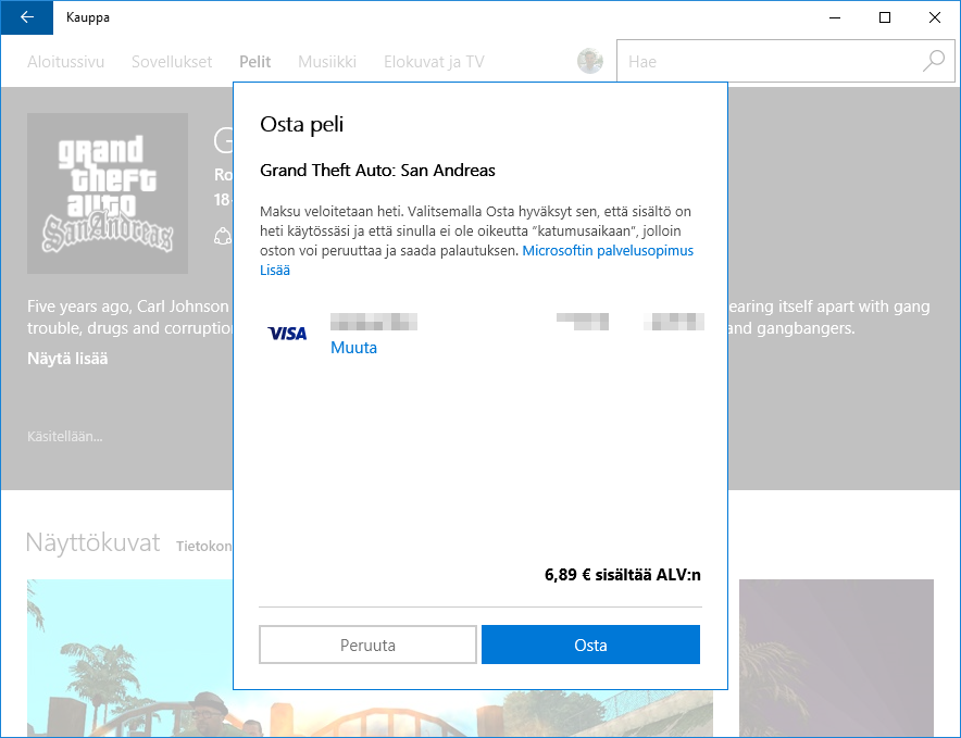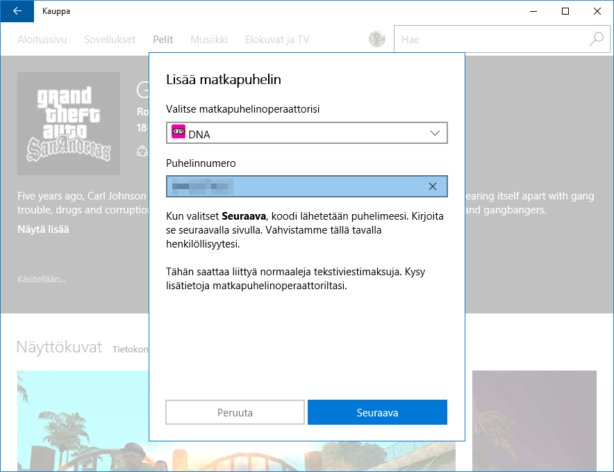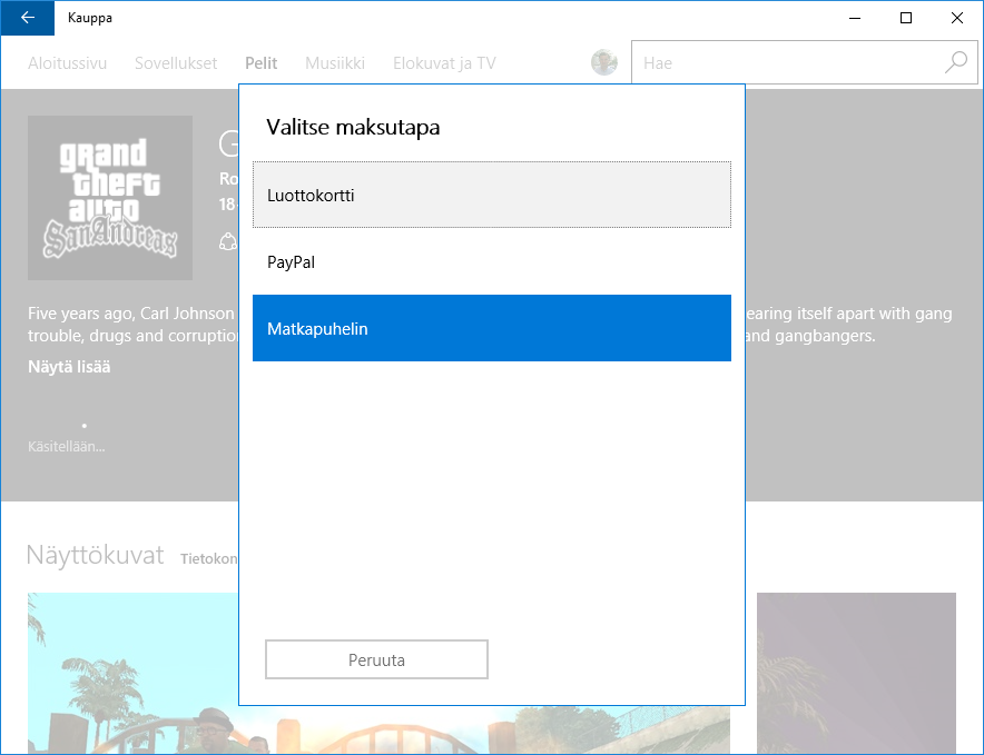 Huom. Jotta voit maksaa ostoksesi puhelinlaskulla tai liittymäsi saldolla, Microsoft-tilin ja Windows 10 -laitteen maa-asetukset tulee olla Suomi.