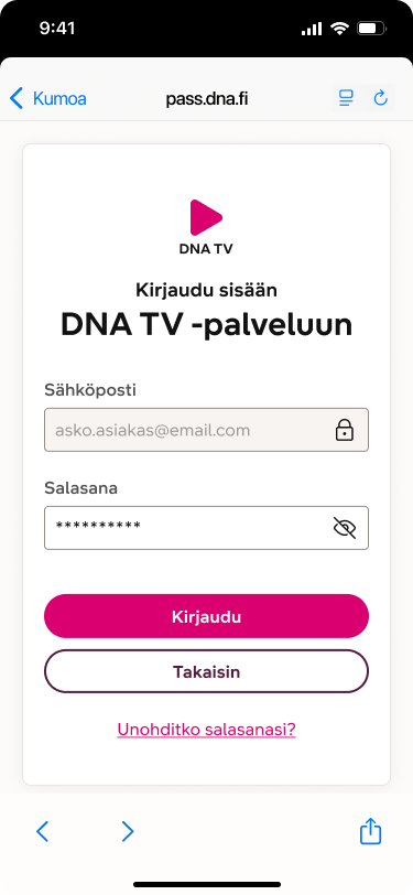 Syötä käyttäjätunnuksesi ja aseta salasana DNA TV -palveluun seuraamalla näytön ohjeita.