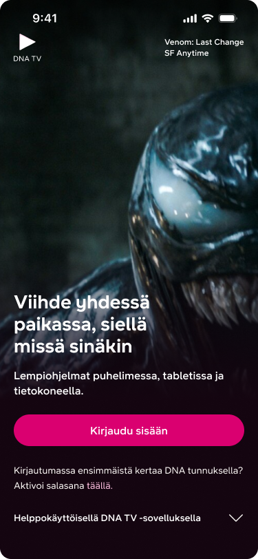 DNA TV -sovelluksen. Lataa sovellus puhelimeesi sovelluskaupasta. (App Store, Google Play)