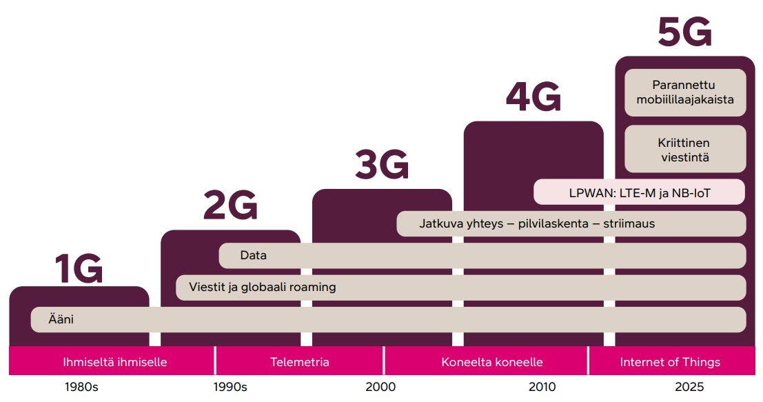 1G:stä aina 5G:hen ja LPWAN:iin: Ihmisiltä ihmisille ja esineille