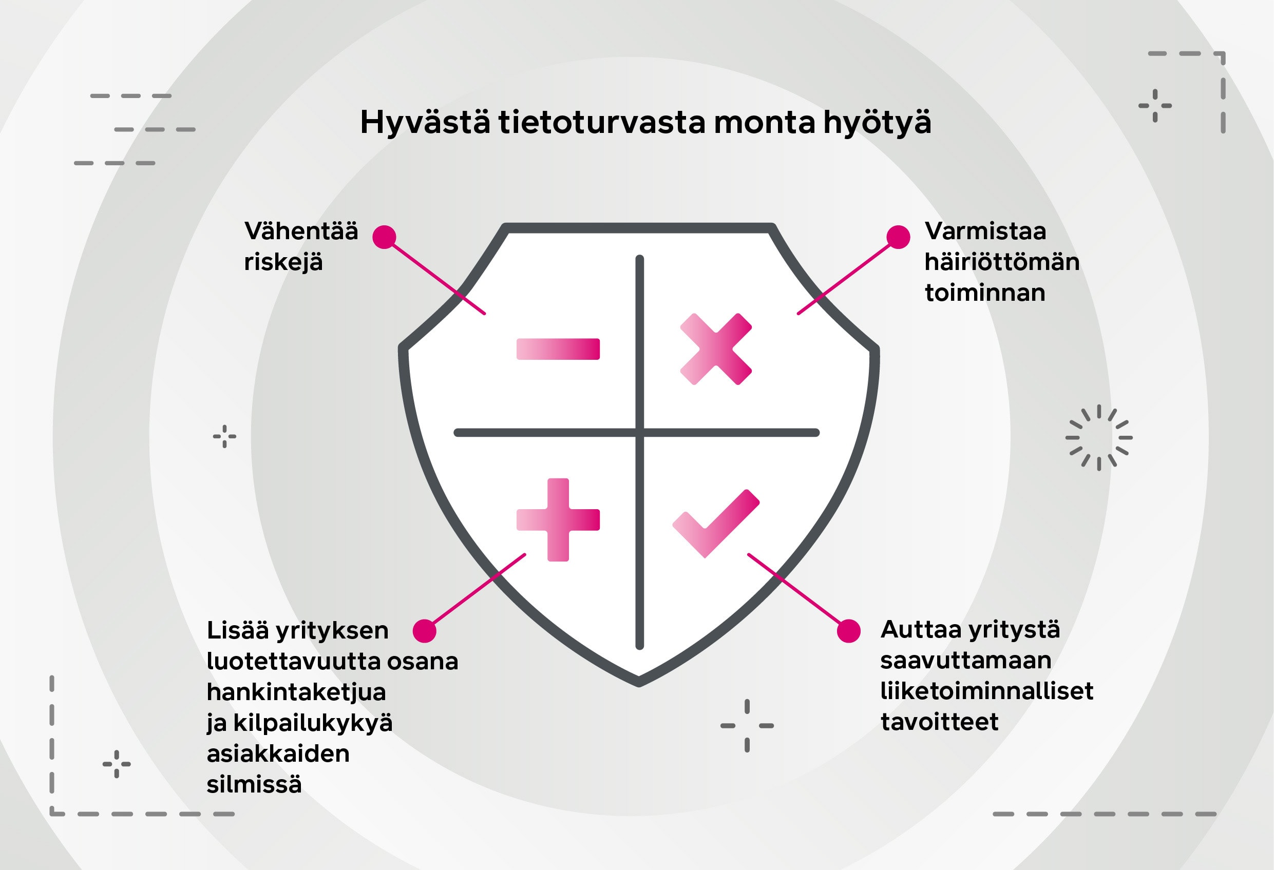 Tietoturva on liiketoiminnan edellytys. Jokaisella menestyvällä yrityksellä on jokin kilpailuetu, johon menestys perustuu. Nykyään kilpailuetu on yhä useammin olemassa ennen kaikkea digitaalisessa muodossa: digitaalinen palvelu, tietomalli, asiakasrekisteri tai verkkokauppa. Jokaiselle pitäisi siis olla selvää, miten kilpailuedun tuottava asia on suojattava vahingoilta.