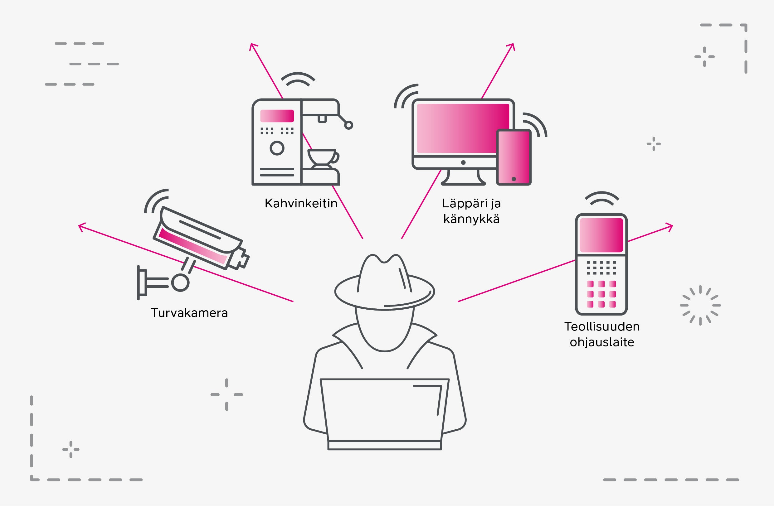 Rikolliset skannaavat jatkuvasti verkkoon kytkettyjä laitteita haavoittuvuuksien tai väärien asetusten varalta, ja pahimmillaan laite on vallattu jo muutamassa minuutissa. Hakkereille aukeaa nopealla vauhdilla uusia väyliä, kun esineiden internet yleistyy.